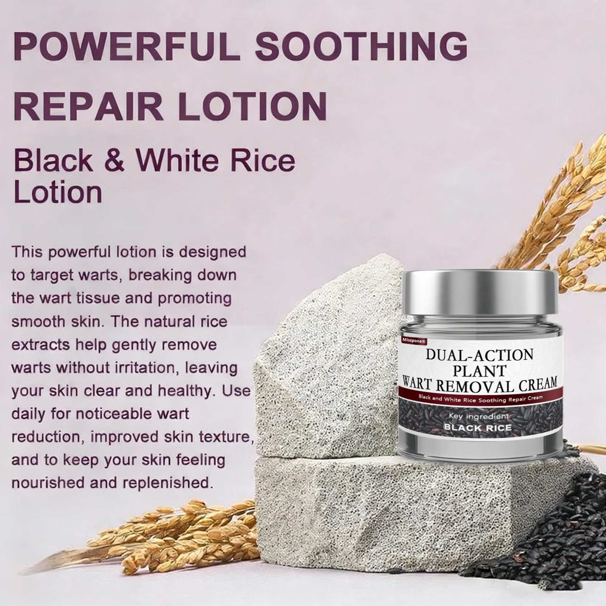 The  Black Rice Skin Repair Essence Cream uses a powerful core ingredientâblack rice enzymeâto gently break down wart tissue and support natural shedding without irritation or damage to the skin. Rich in natural anthocyanins, black rice offers excellent soothing and restorative properties, helping protect the skin barrier while effectively removing warts and minimizing discomfort, redness, and inflammation.With a gentle, non-irritating texture, this cream is suitable for dry, oily, and sensitive skin types alike, making it safe for use on multiple areas of the body.
