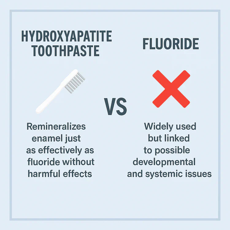 Hydroxyapatite is your teeth's natural building block our toothpaste delivers a concentrated dose to repair micro cracks, fill cavities before they start, and shield against hot/cold shocks.